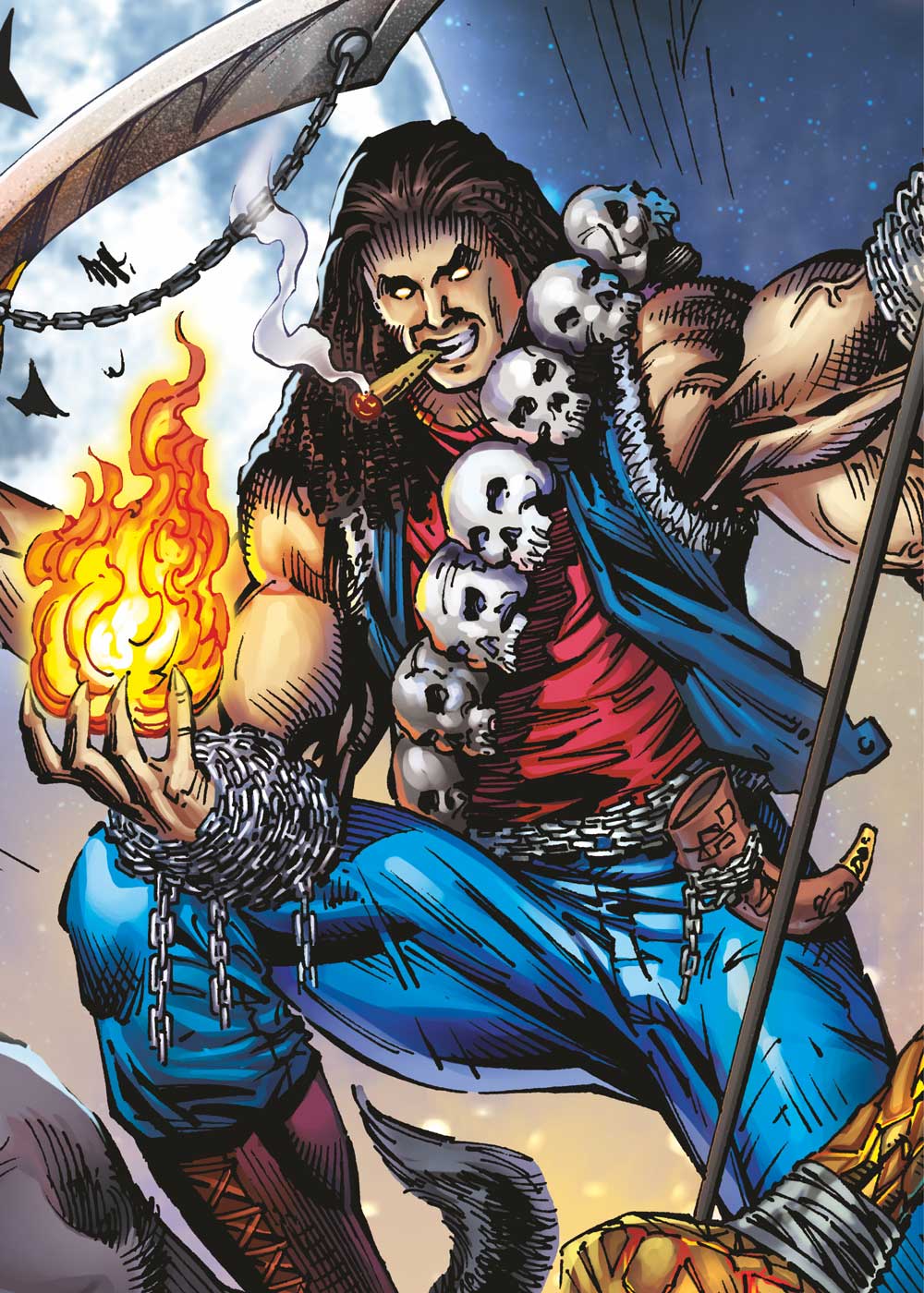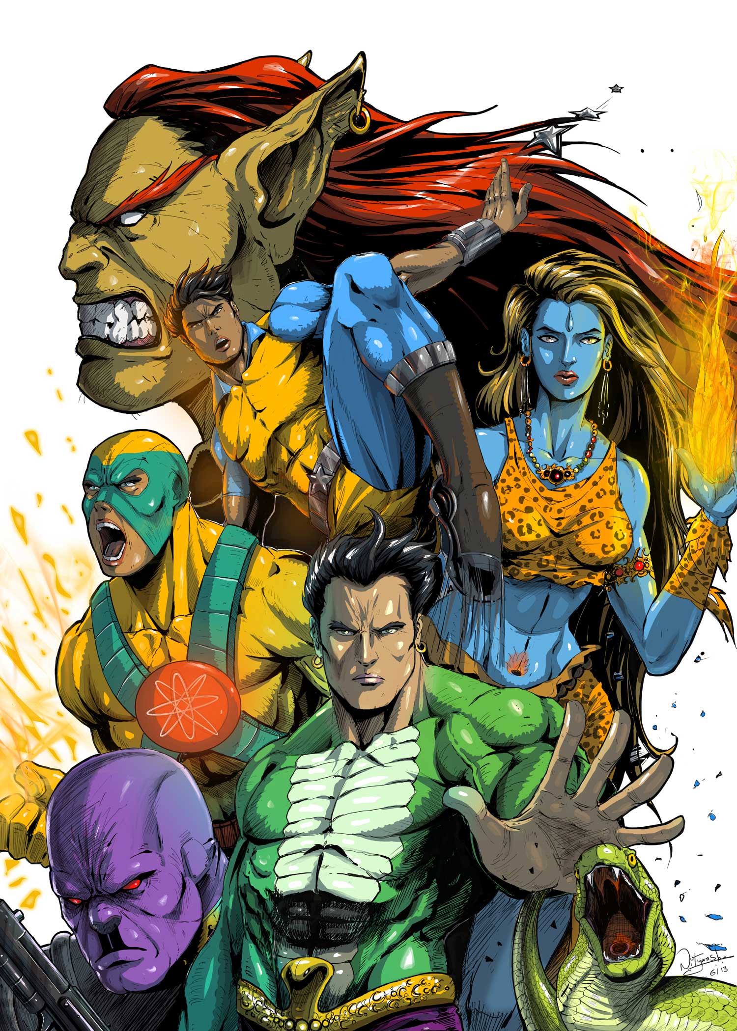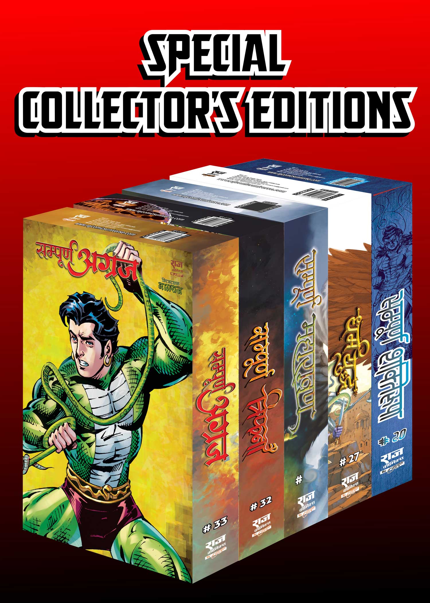 Nagraj is an iconic superhero known for his serpent-based powers. Nagraj defends humanity from various threats using his venomous abilities and martial arts skills. Powerful snakes like Nagu, Saudangi and Sheetnag reside in his body and assist him in his battles. Nagraj is the undisputed greatest superhero of India.